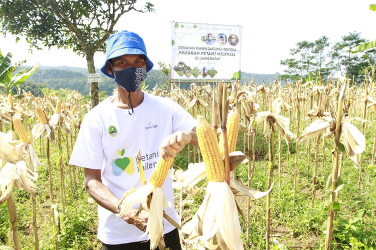 Panen jagung perdana program Petani Milenial yang didukung Bank BJB.