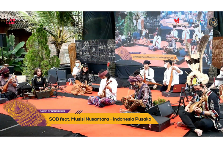 Kelompok musik Sound of Borobudur bersama sejumlah musisi Tanah Air berkolaborasi memainkan alat musik yang terdapat pada relief Candi Borobudur.