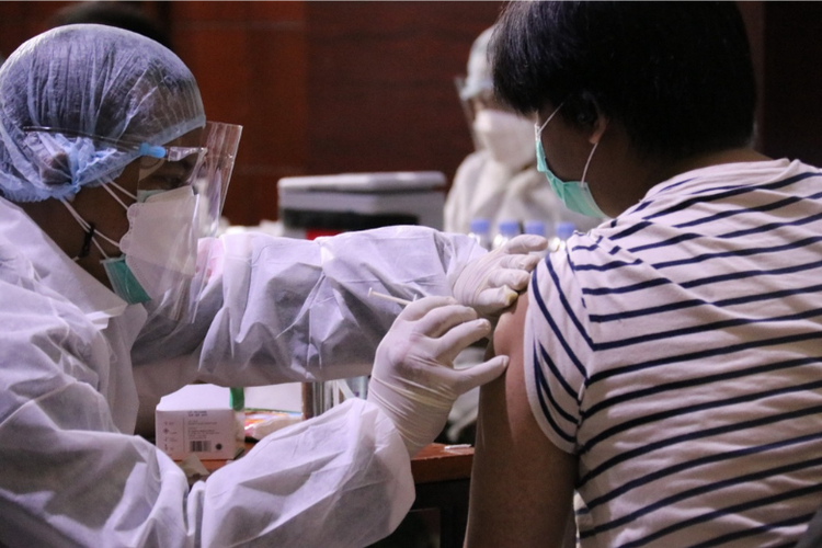 Peserta Gebyar 5.000 Vaksinasi Massal sedang divaksin.