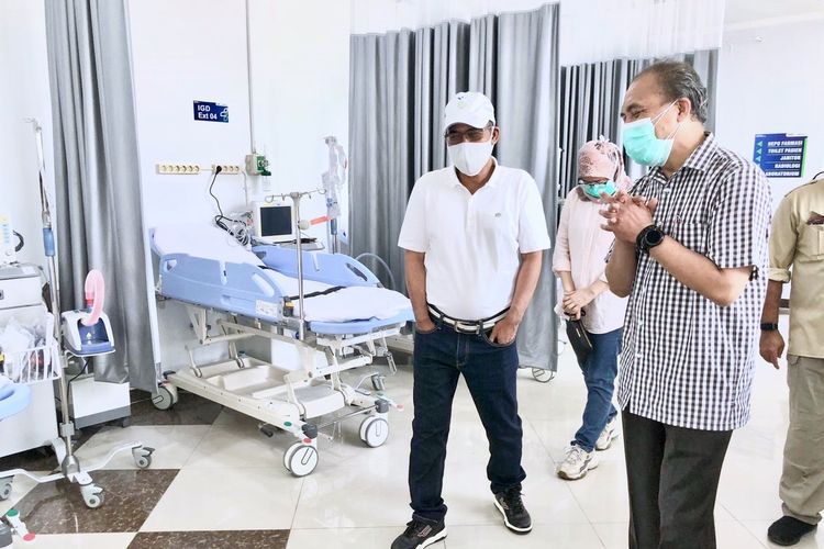 Direktur Logistik dan Infrastruktur Pertamina Mulyono saat melakukan kunjungan ke Rumah Sakit (RS) Darurat Covid-19 Asrama Haji Pondok Gede pada Sabtu, (17/7/2021).