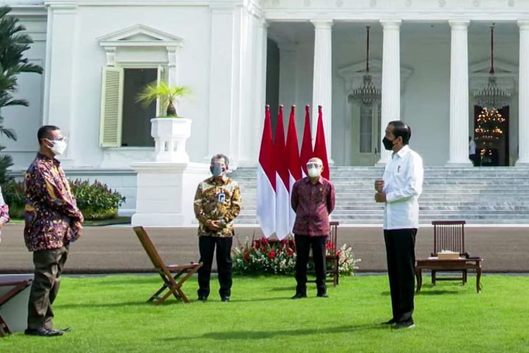 Presiden Jokowi menyerahkan BPUM di Istana Kepresidenan, Jumat (30/7/2021).
