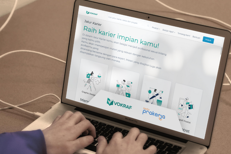 Ilustrasi mendaftar pelatihan online di Vokraf.
