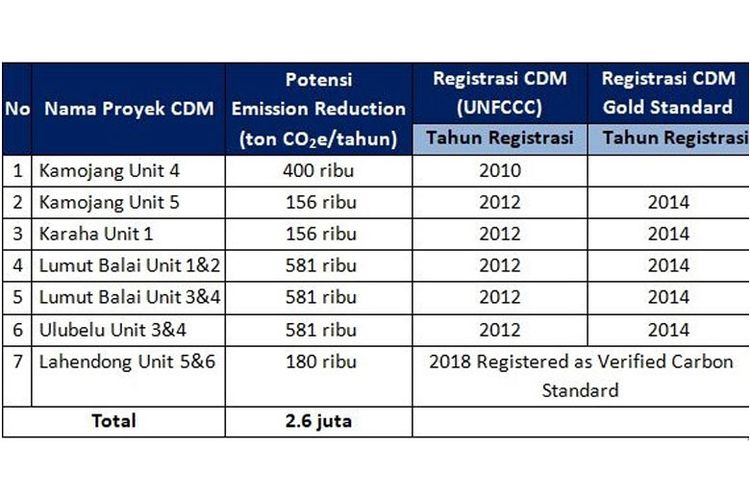Daftar proyek CDM PT Pertamina Geothermal Energy (PGE).