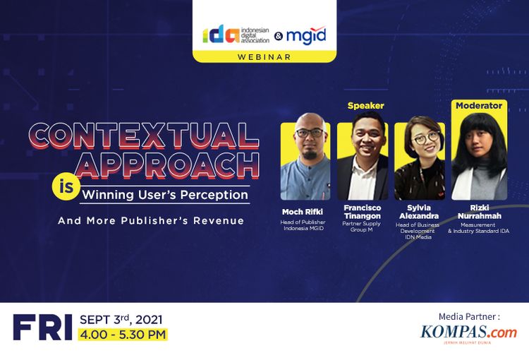 Webinar bertajuk Contextual Approach to Targeting Digital Advertising yang digelar Indonesian Digital Association (IDA) akan berlangsung pada Jumat (3/9/2021).
