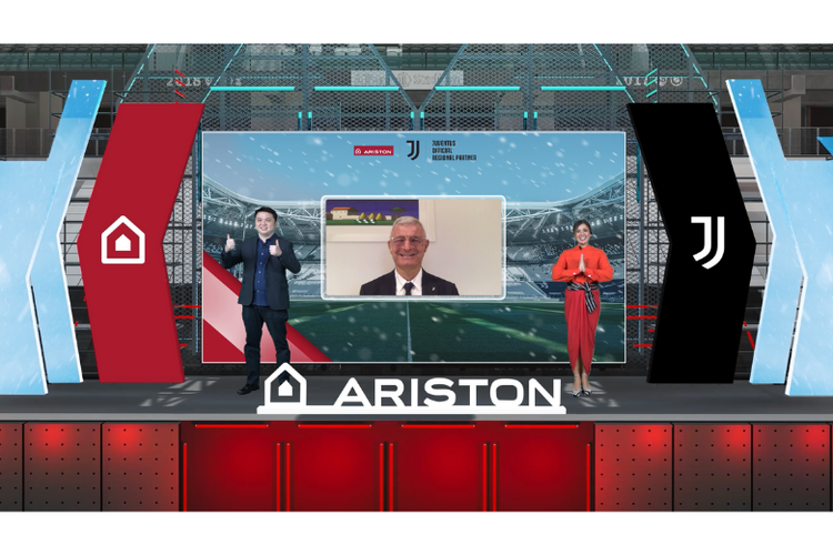 Managing Director Ariston Thermo Indonesia Erwin Lim (kiri), legenda Juventus Fabrizio Ravanelli (tengah), dan pembawa acara Nirina Zubir (kanan).