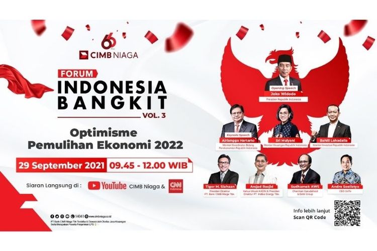 Forum Indonesia Bangkit Volume 3 akan berlangsung Rabu (29/9/2021) tersebut mengusung tema ?Optimisme Pemulihan Ekonomi 2022?. (DOK. CIMB Niaga)