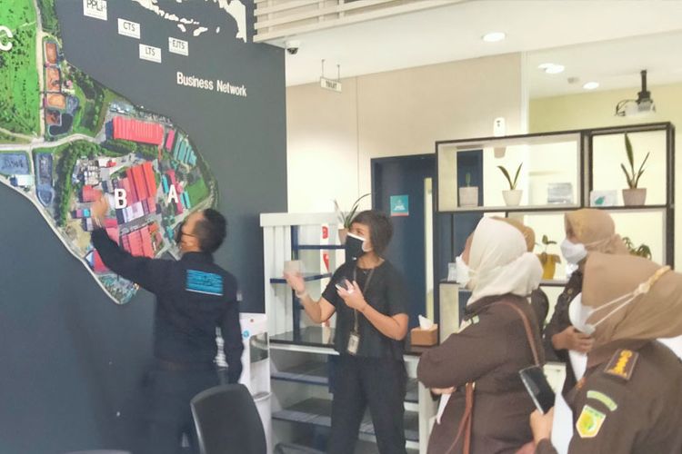 Manager Humas PPLI, Arum Tri Pusposari sedang menjelaskan mengenai kawasan pengolahan limbah B3 PPLI seluas 64 hektare.