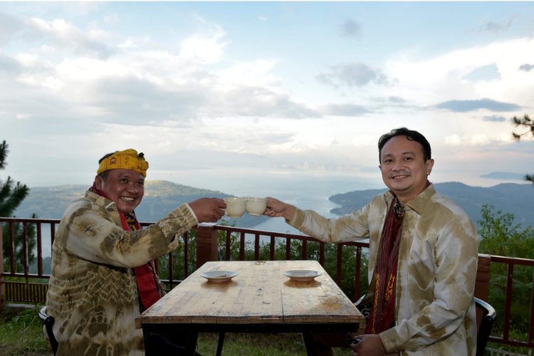 Anggota DPR RI Komisi VII dari Fraksi Partai Golkar Lamhot Sinaga (kiri) dan Wamendag Jerry Sambuaga (kanan) saat melakukan kunjungan ke Desa Sigumpar.