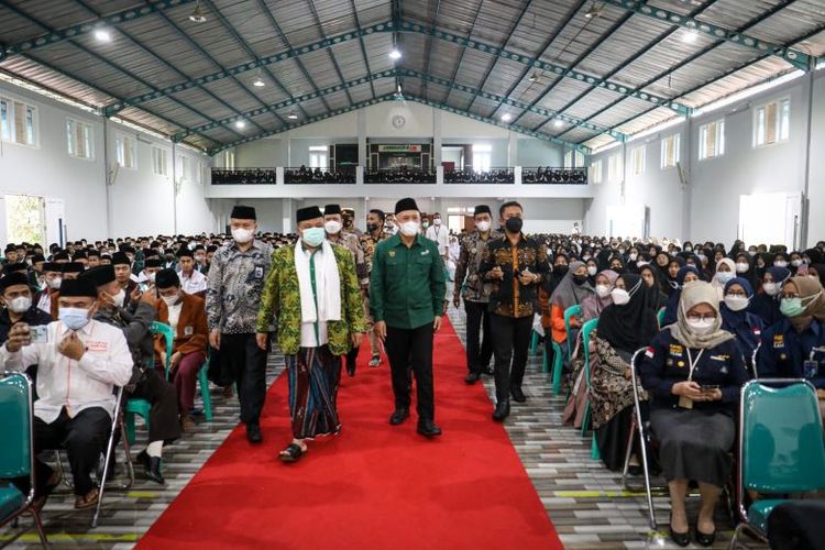 Menteri Koperasi dan Usaha Kecil Mengengah (Menkop UKM) Teten Masduki untuk melakukan kunjungan kerja sekaligus peresmian Gedung Graha Koperasi Darussyifa Yaspida Sukabumi, Pondok Pesantren Salafiyah Terpadu Darussyifa Al-Fithroh (Perguruan Islam Yaspida) di Kadudampit, Sukabumi, Jawa Barat, Selasa (19/10/2021).(Dok Humat Kemenkop UKM)