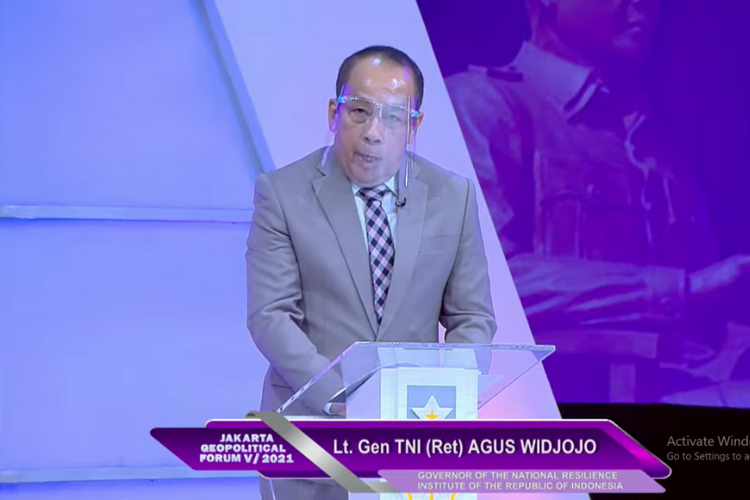 Agus Widjojo saat menyampaikan pidato penutupan acara Jakarta Geopolitical Forum ke-5 2021.