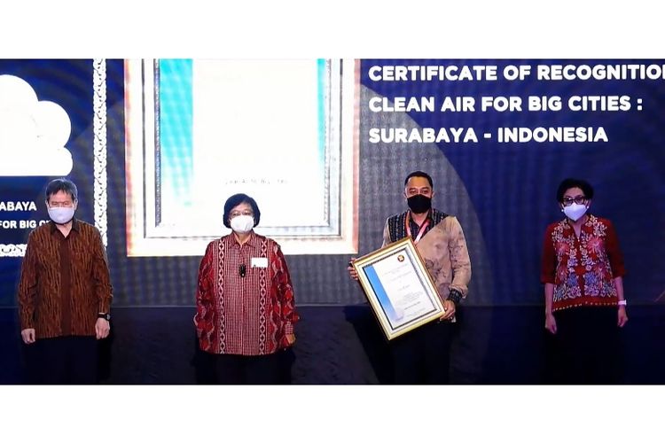 Wai Kota Surabaya Eri Cahyadi saat menerima penghargaan di kancah ASEAN.