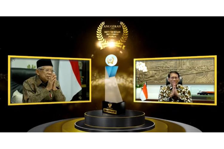 Wakil Presiden RI KH Ma?ruf Amin memberikan pernghargaan secara simbolis kepada Direktur Utama KAI Didiek Hartantyo.