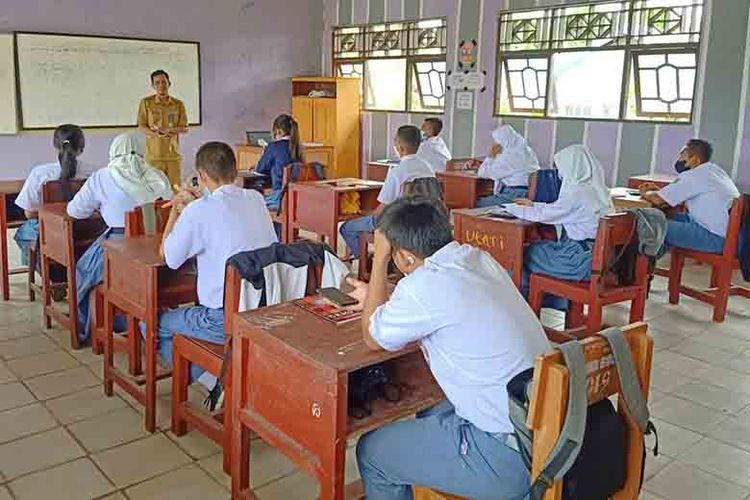 Felix mengajar dengan menggunakan media pembelajaran papan permainan daring melalui smartphone siswa.