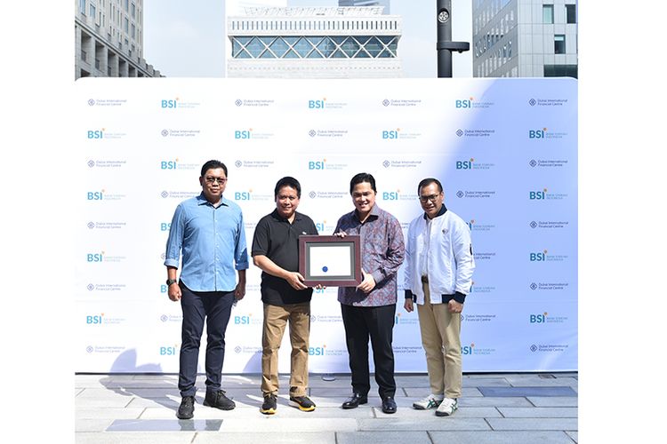 Menteri BUMN Erick Tohir menerima letter of incorporation untuk Bank Syariah Indonesia dari Dubai International Financial Center (DIFC), Kamis (4/11/2021)