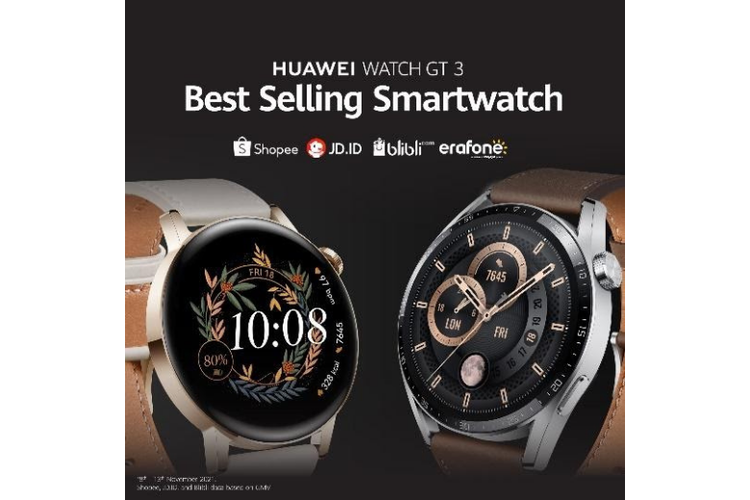 Huawei Watch GT 3 menjadi smartwatch terlaris di beberapa platform e-commerce.(DOK. Huawei)