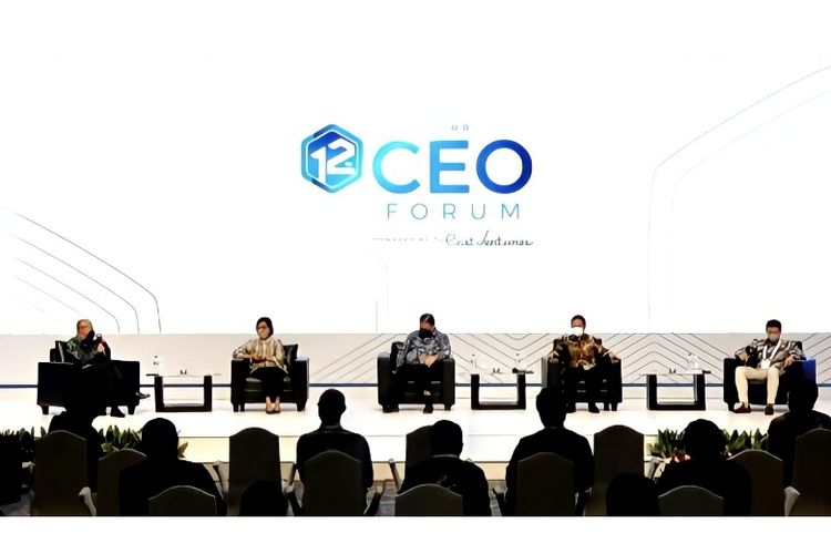 Para narasumber yang hadir dalam Kompas100 CEO Forum ke-12 Powered by East Ventures di JCC.