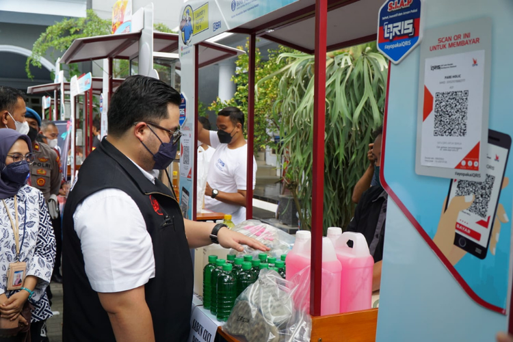 Mas Dhito tampak melihat barang dagangan para pelaku UMKM di Kampung Inggris, Kecamatan Pare, Jawa Timur.