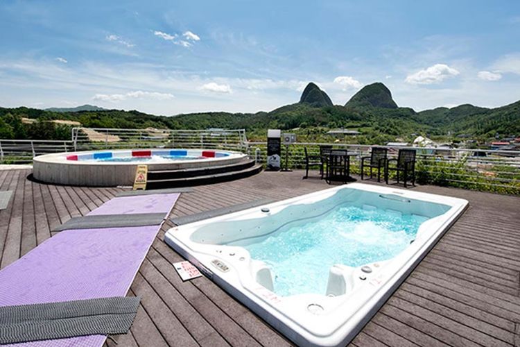 Berendam air panas dengan pemandangan indah di Jinan Red Ginseng Spa.