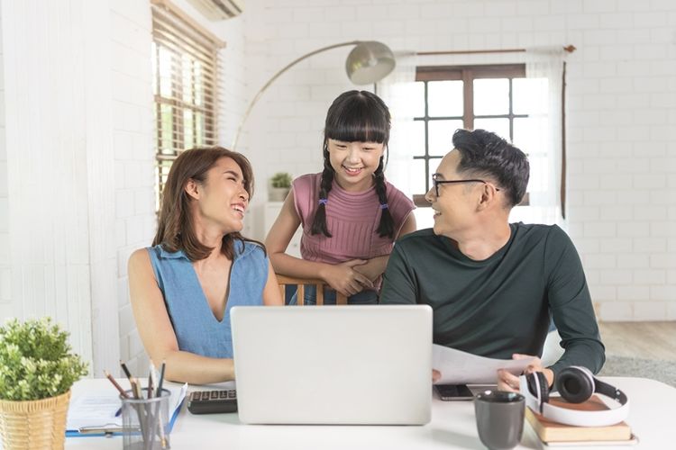Ilustrasi keluarga yang memanfaatkan media digital.