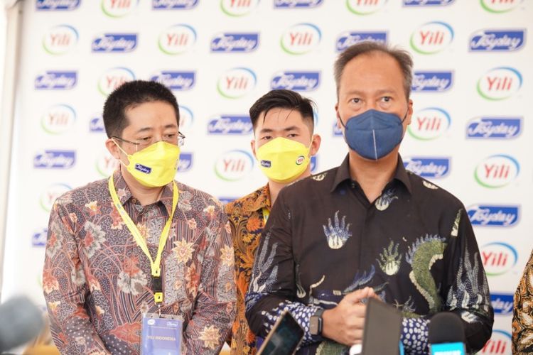 Presiden Direktur PT Yili Indonesia Dairy Yu Miao (kiri) dan Menteri Perindustrian Agus Gumiwang (kanan) saat meresmikan pabrik Yili Group di Cikarang.