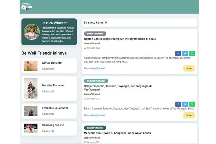 Tampilan laman web Be Well Friends.