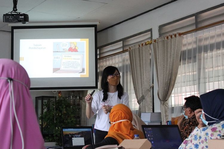 Head of Guru Binar, Juliana, saat memberikan materi pelatihan di SMPN 13 Depok.