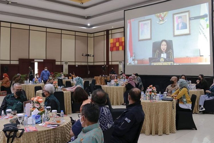 Tamu undangan saat menyimak pemaparan materi dari Menteri PPPA RI Bintang Puspayoga.