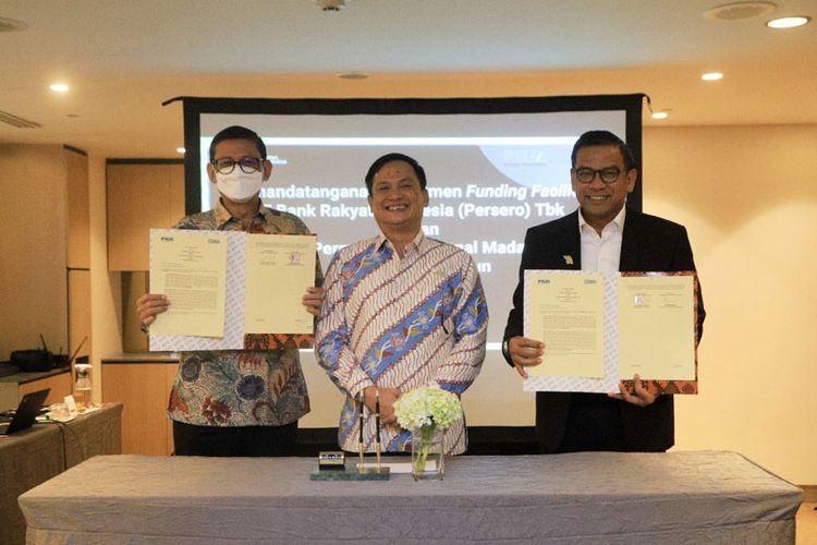Penandatanganan komitmen funding facility antara BRI dengan PNM pada Kamis (16/12/2021) di Jakarta.