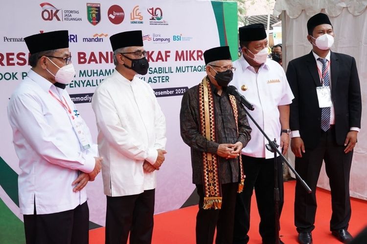 Wakil Presiden Republik Indonesia (Wapres RI) KH Ma'ruf Amin meresmikan pendirian Bank Wakaf Mikro (BWM) Pondok Pesantren Muhammadiyah Sabilil Muttaqien di Kecamatan Gisting, Kabupaten Tanggamus, Metro, Provinsi Lampung, Kamis (23/12/2021).(Dok. Ojk)