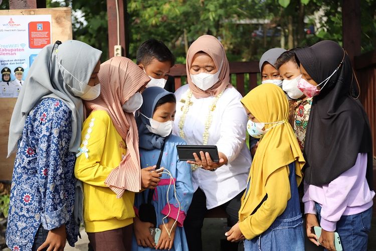 Warga Sumberwatu saat menikmati fasilitas WiFi gratis. (Dok. Pemkab Sleman)
