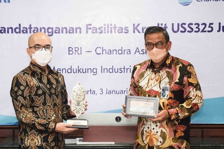 Direktur Bisnis Wholesale dan Kelembagaan BRI Agus Noorsanto dan Direktur Keuangan Chandra Asri Andre Khor Kah Hin saat melakukan penandatanganan perjanjian fasilitas pembiayaan dan transaksi.