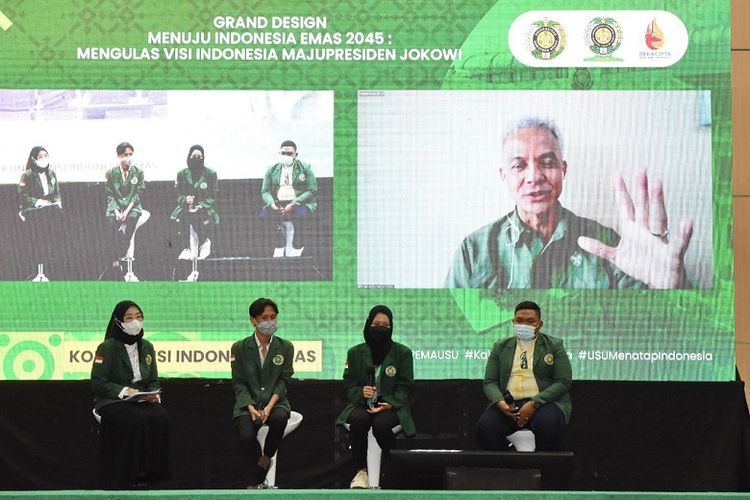 Ganjar Pranowo menjadi narasumber dalam Konferensi Indonesia Emas yang digelar di Auditorium Universitas Sumatera Utara (USU), Minggu (9/1/2022)(Dok. Humas USU)