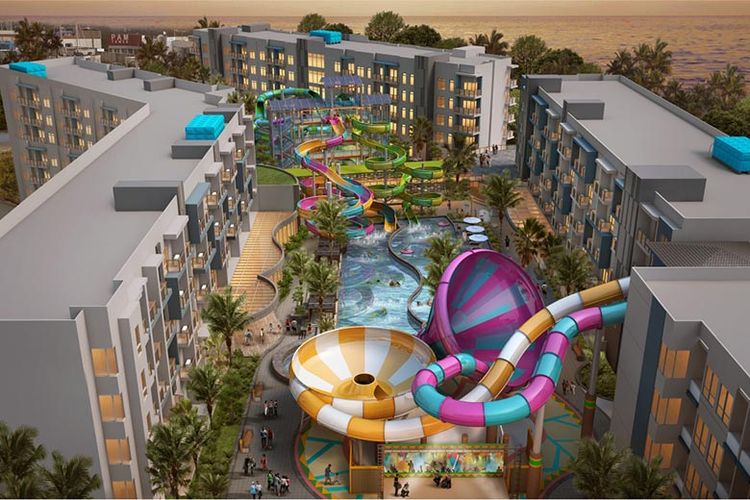 Kolam renang dan permainan anak di kawasan Balikpapan Superblock.