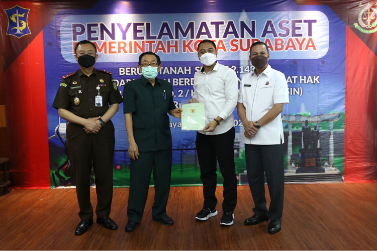 Gambat penyerahan sertifikat ke Wali Kota Surabaya.