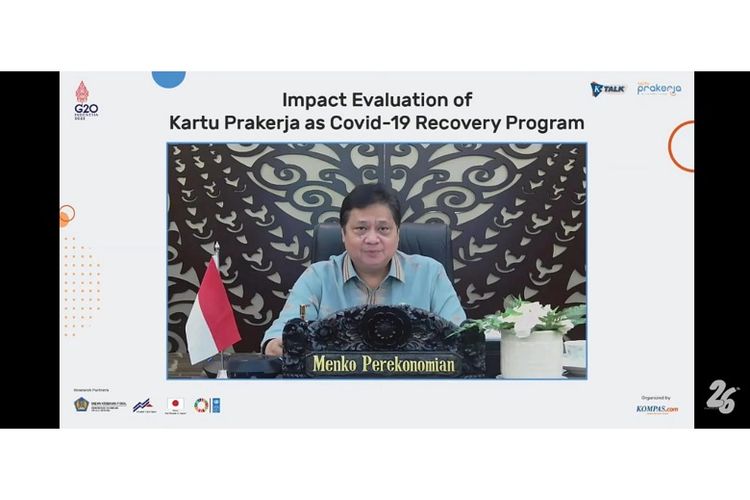 Menko Perekonomian Airlangga Hartarto dalam webinar ?Impact Evaluation of Kartu Prakerja as Covid-19 Recovery Program?, Rabu (9/2/2022).