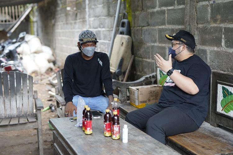 Bupati Kediri Hanindhito Himawan Pramono berdiskusi dengan Menjeng terkait kondisi jalan di Desa Kaliboto, Kecamatan Tarokan.