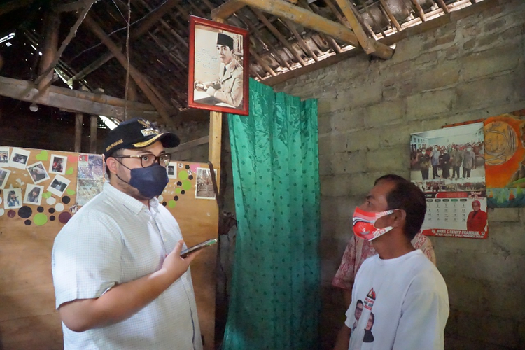 Bupati Kediri Hanindhito Himawan Pramana saat mengunjungi rumah Zaenal, warga Dusun Manyaran, yang akan diberi fasilitas renovasi hunian.