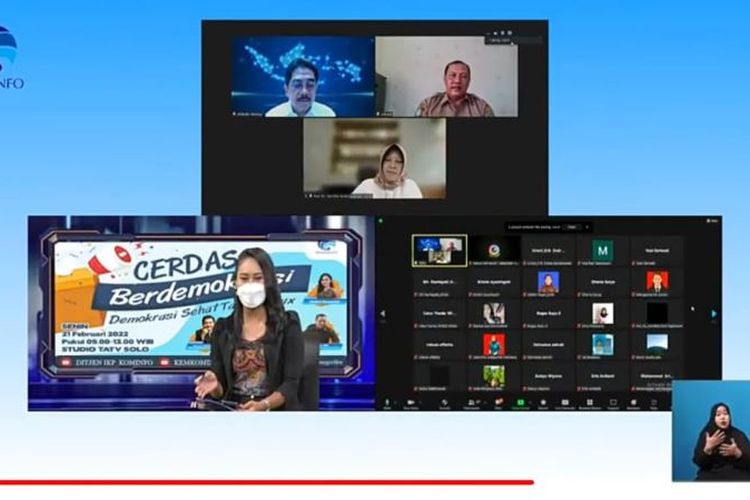 Tangkapan layar webinar ?Cerdas Berdemokrasi-Demokrasi Sehat Tanpa Hoax? yang diselenggarakan Senin (21/2/2022).