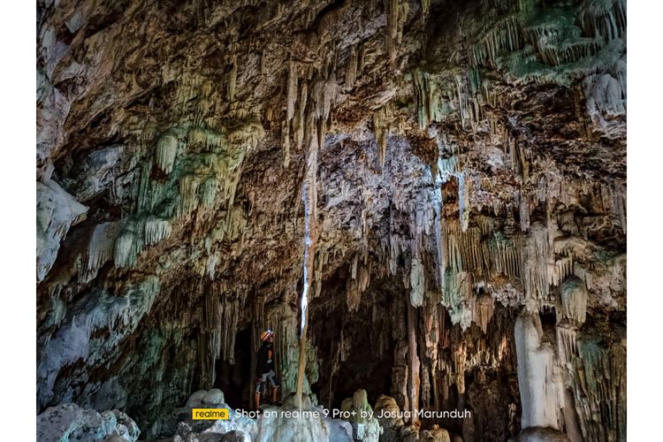 Suasana Gua Berlian, Pulau Sombori, Sulawesi Tengah, yang gelap mampu ditangkap dengan baik oleh kamera realme 9 Pro+