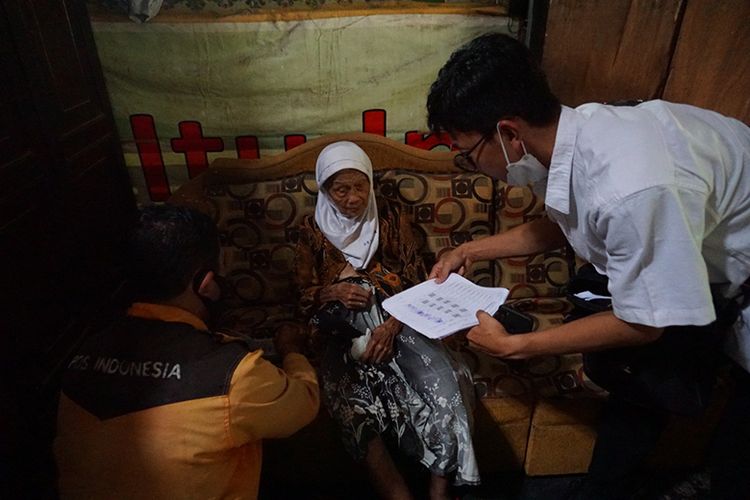 Sumiati, warga Desa Paron, menerima BPNT secara langsung dari Dinsos Pemkab Kediri. (Dok. Pemkab Kediri)