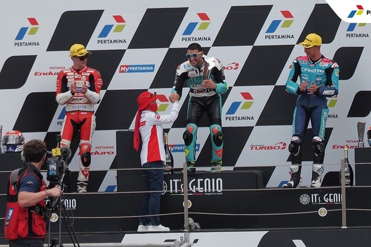 Pemberian Piala Pertamina Grand Prix of Indonesia 2022 di Pertamina Mandalika International Street Circuit, Minggu (20/3/2022)