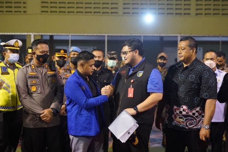 Bupati Kediri Mas Dhito menerima aspirasi mahasiswa yang melakukan unjuk rasa pada Rabu (13/4/2022)