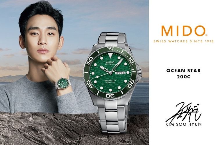 Kim Soo-hyun dengan Jam Mido Ocean Star 200C.