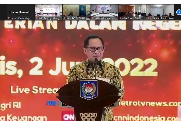 Menteri Tito saat memberikan sambutan dalam Rakornas Keuangan Daerah Tahun 2022.(Dok. Kemendagri)