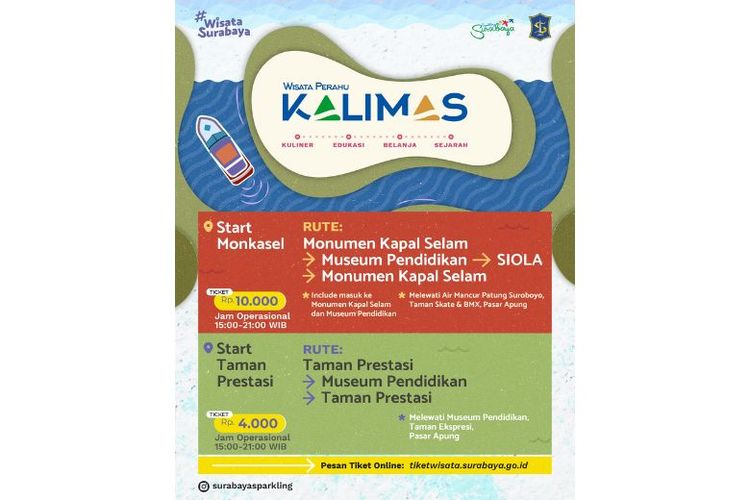 Dua paket rute perjalanan Wisata Perahu Kalimas.
