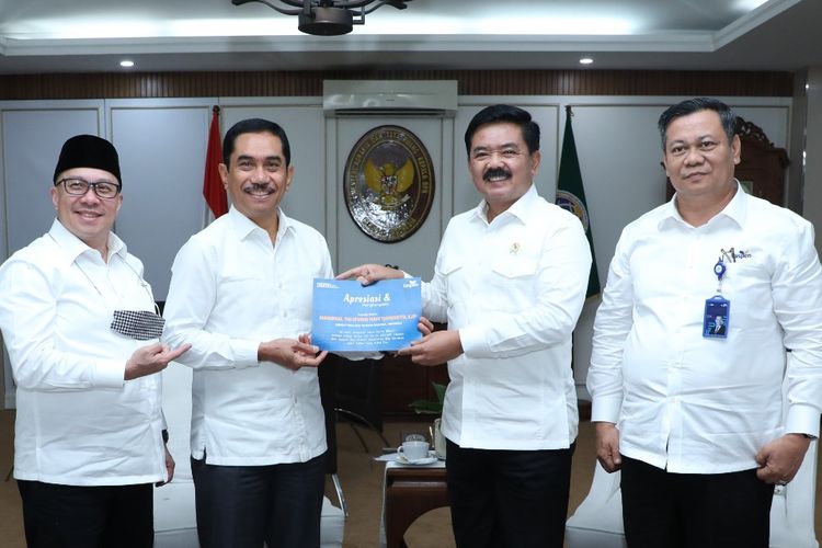 Penyerahan manfaat THT dan pensiun oleh Komisaris Utama Taspen Suhardi Alius yang didampingi Direktur Utama Taspen ANS Kosasih, Direktur Operasional Taspen Ariyandi, Pgs Services and Marketing Division Head Resi Lora dan Branch Manager Taspen Kantor Cabang Utama Jakarta A Heri Wiyono kepada Marsekal TNI (Purn) Hadi Tjahjanto, Senin (27/6/2022).(Dok. Taspen)