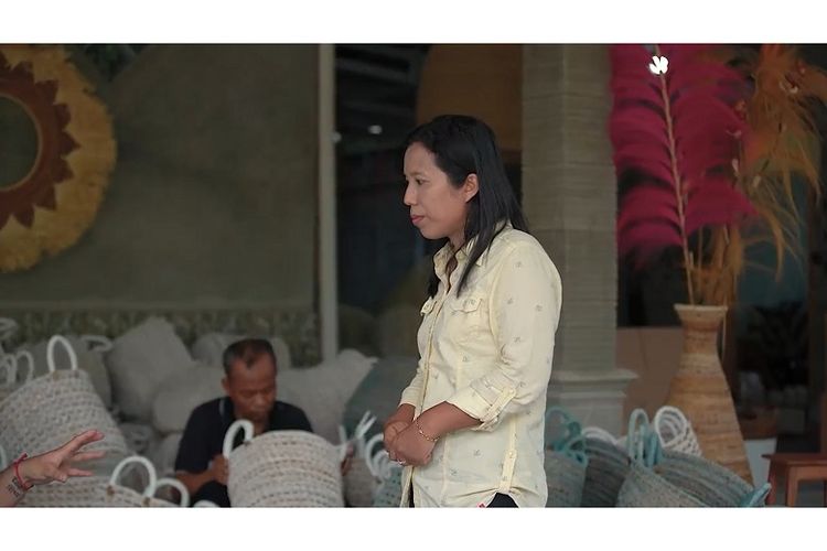 Yu Payem saat di gudang produksi kerajinan miliknya.