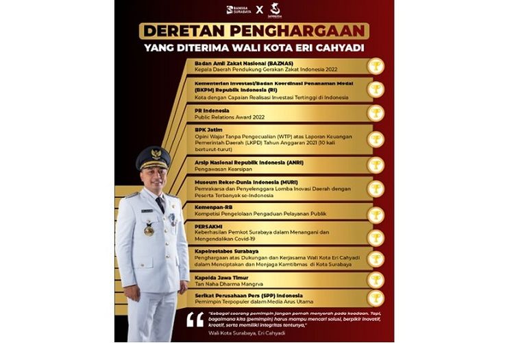 Deretan penghargaan yang diterima Wali Kota Eri Cahyadi