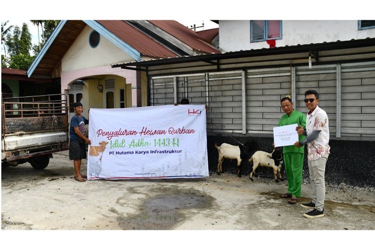 Penyaluran hewan kurban berupa kambing dari PT Hutama Karya Infrastruktur (HKI).