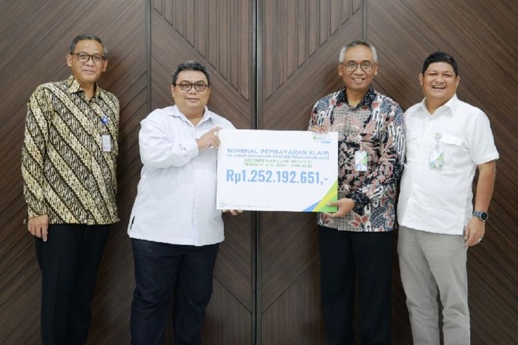 BPJAMSOSTEK menyerahkan santunan Jaminan Kecelakaan Kerja (JKK) dan Jaminan Kematian (JKM) secara simbolis(Dok. BPJAMSOSTEK)